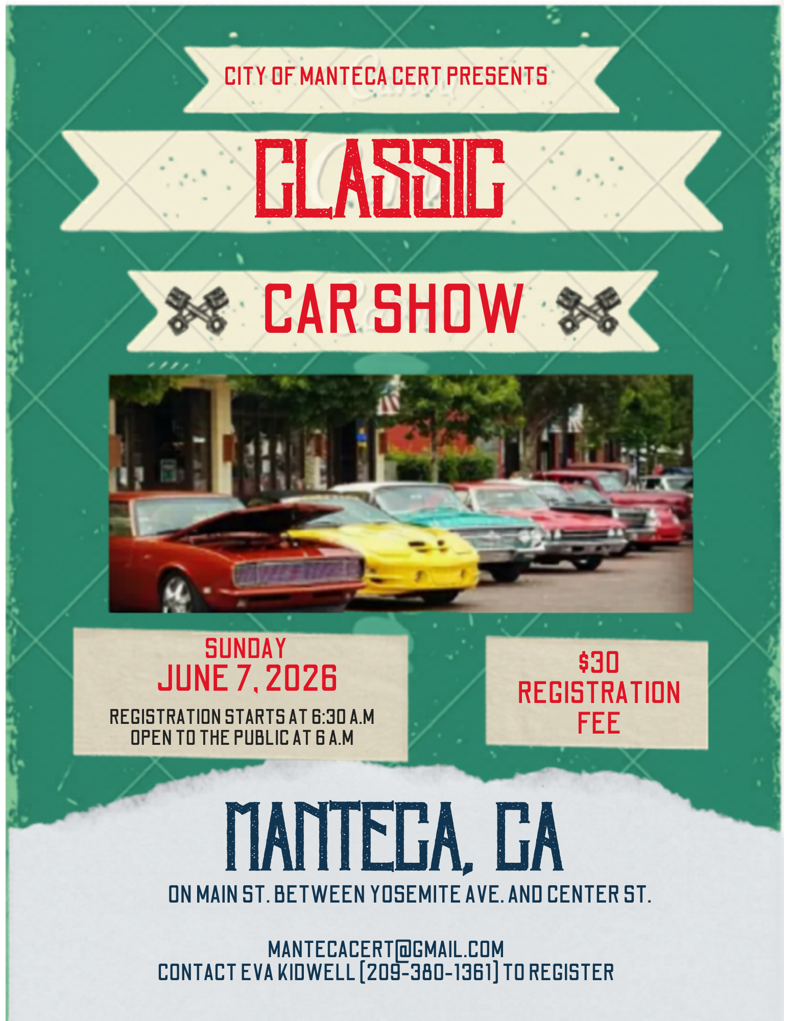 This car show is organized, processed, and fully managed by the City of Manteca CERT. All registrations, payments, and event-related questions will be handled directly by their team.